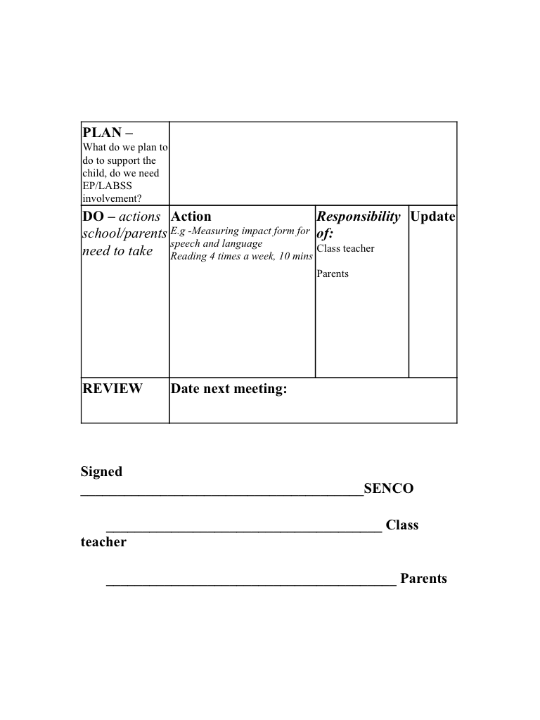 I lead the parent consultation meetings with your child’s class teacher, yourself, and if appropriate your child where we discuss your child’s strengths and areas of concern, from this an action plan is created which everyone is part of and accountable for.
